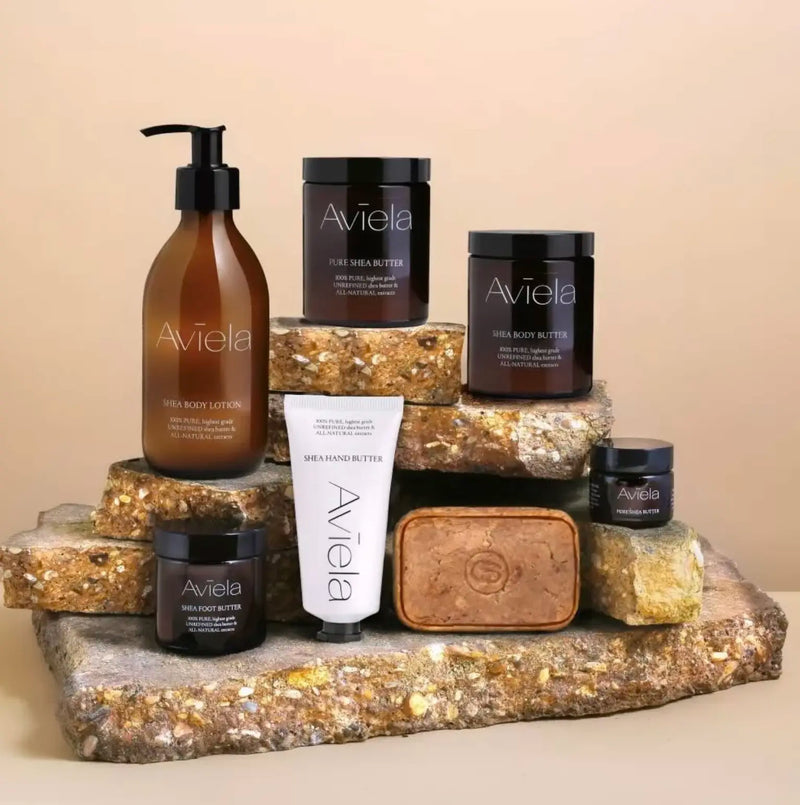 Aviela commits to natural care, drawing from the traditional uses of Shea Butter among the Dagara people of Northern Ghana, where it's considered a remedy for various skin issues. The name 'Aviela' itself conveys notions of goodness and beauty, aligning with the brand's philosophy of harnessing nature’s potential to nourish and heal. The brand prides itself on its ethical sourcing practices, partnering with a women's cooperative in Ghana to support the local community and ensure the highest quality of raw materials.