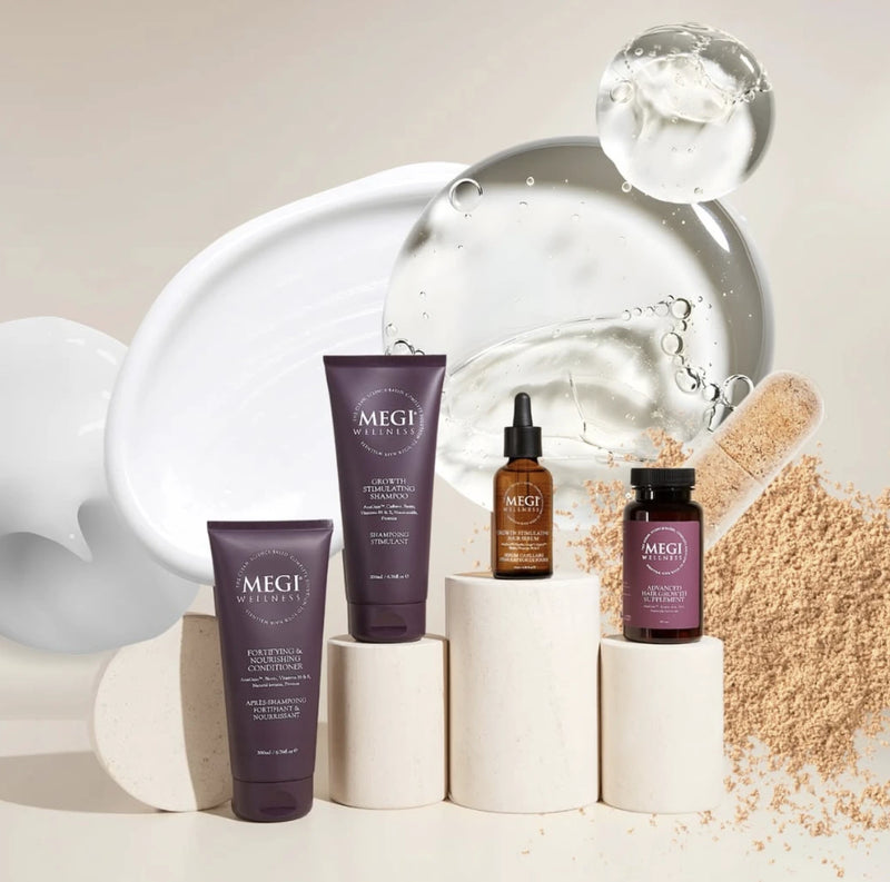 At MEGI Wellness, we see you. We understand that behind every concern about hair loss is a woman who deserves to feel confident and empowered. That's why we've dedicated ourselves to creating more than just products—we've craftedsolutions that honor both the science of hair health and the power of nature,specifically designed for women navigating hair loss, thinning, and the natural changes that come with life's seasons.