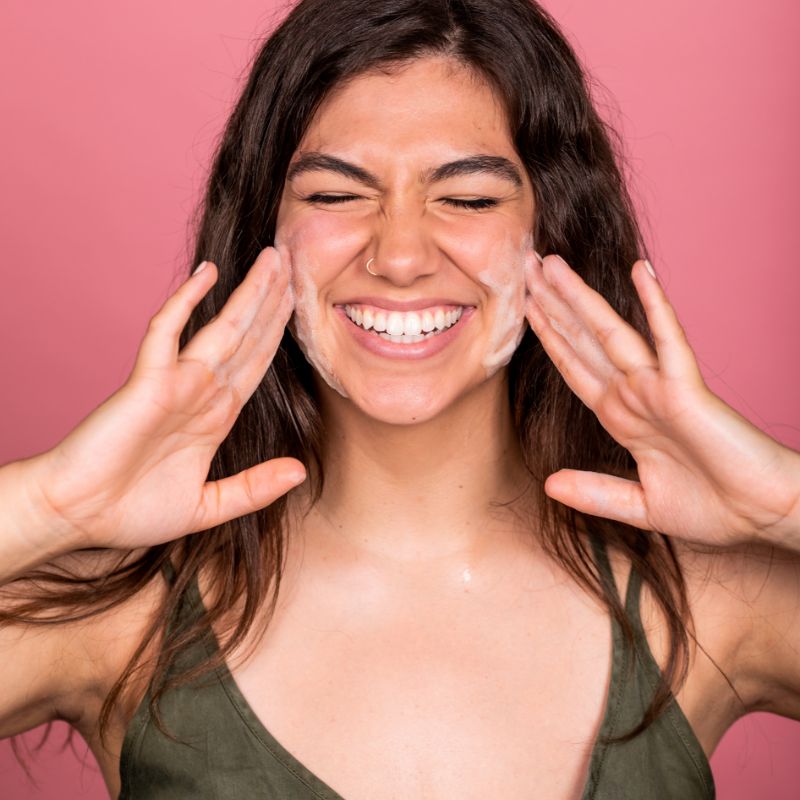 1. Apply 1-2 pumps of cleanser onto your wet face, massaging in circular motions to remove dirt and makeup.