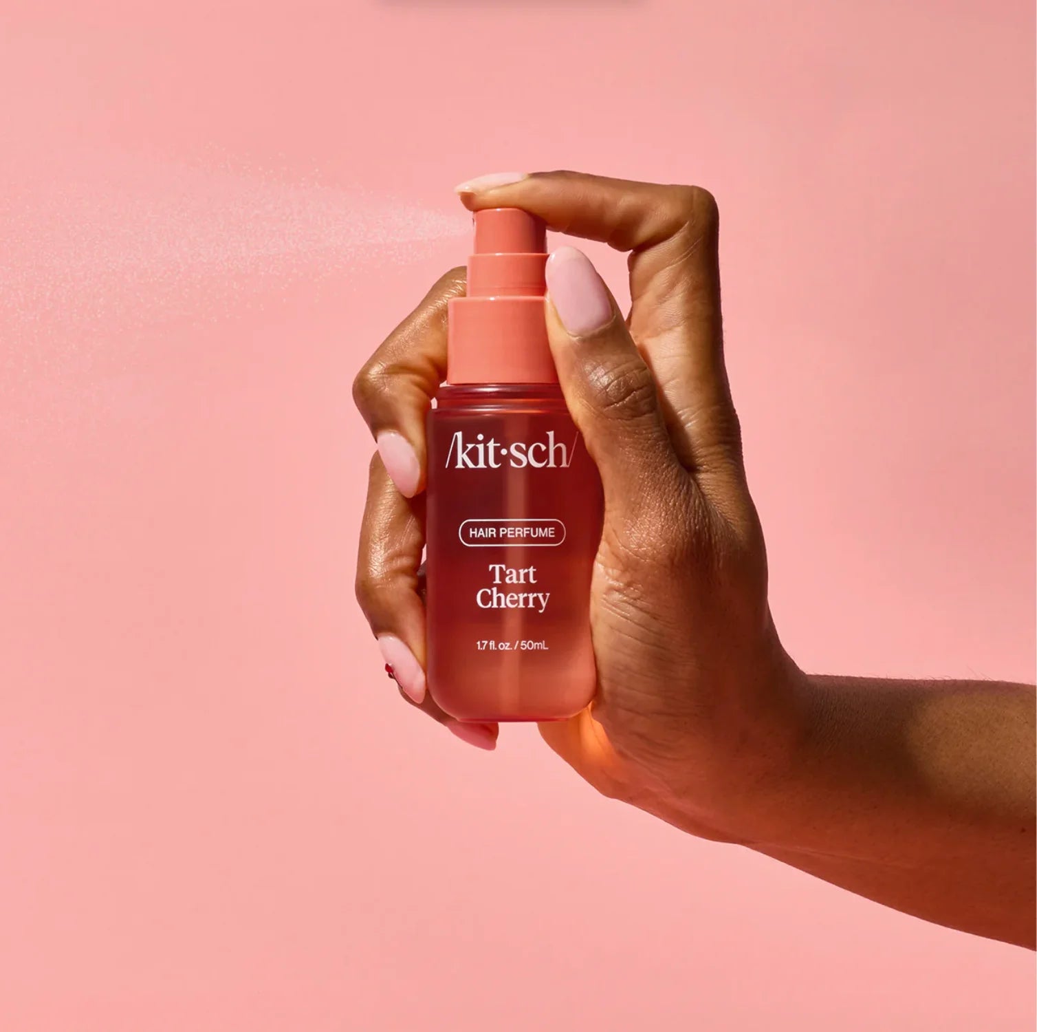 The Kitsch Tart Cherry Hair Perfume is a fruity gourmand scent that feels like lounging on a picnic blanket, laughing with your best friends on a sunny weekend afternoon.